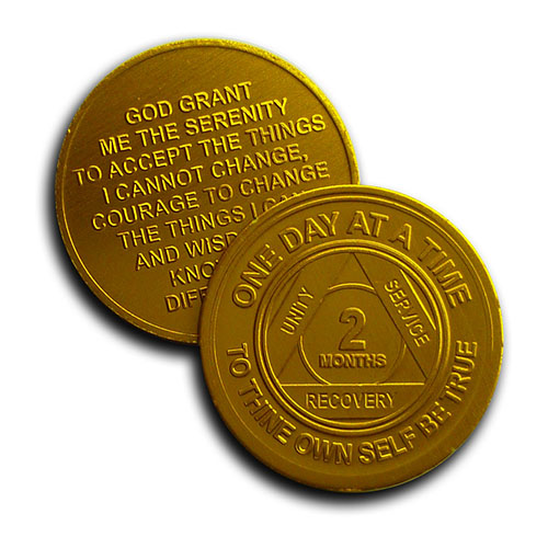 Although most commonly used by Alcoholics Anonymous, these tokens are also used by numerous other recovery groups, as they are not AA branded and are universal. Each coin displays the duration of clean / sober time on the front, with the Serenity Prayer on the reverse.
