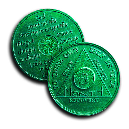 Although most commonly used by Alcoholics Anonymous, these tokens are also used by numerous other recovery groups, as they are not AA branded and are universal. Each coin displays the duration of clean / sober time on the front, with the Serenity Prayer on the reverse.