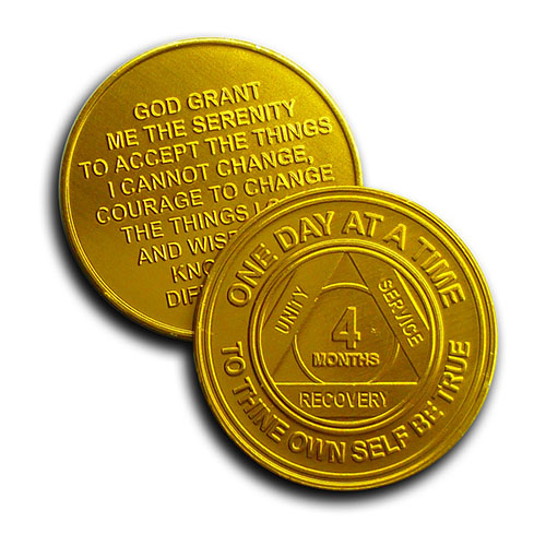Although most commonly used by Alcoholics Anonymous, these tokens are also used by numerous other recovery groups, as they are not AA branded and are universal. Each coin displays the duration of clean / sober time on the front, with the Serenity Prayer on the reverse.