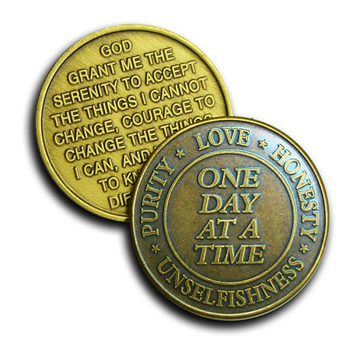 Although most commonly used by Alcoholics Anonymous, these tokens are also used by numerous other recovery groups, as they are not AA branded and are universal. Each coin displays the duration of clean / sober time on the front, with the Serenity Prayer on the reverse.